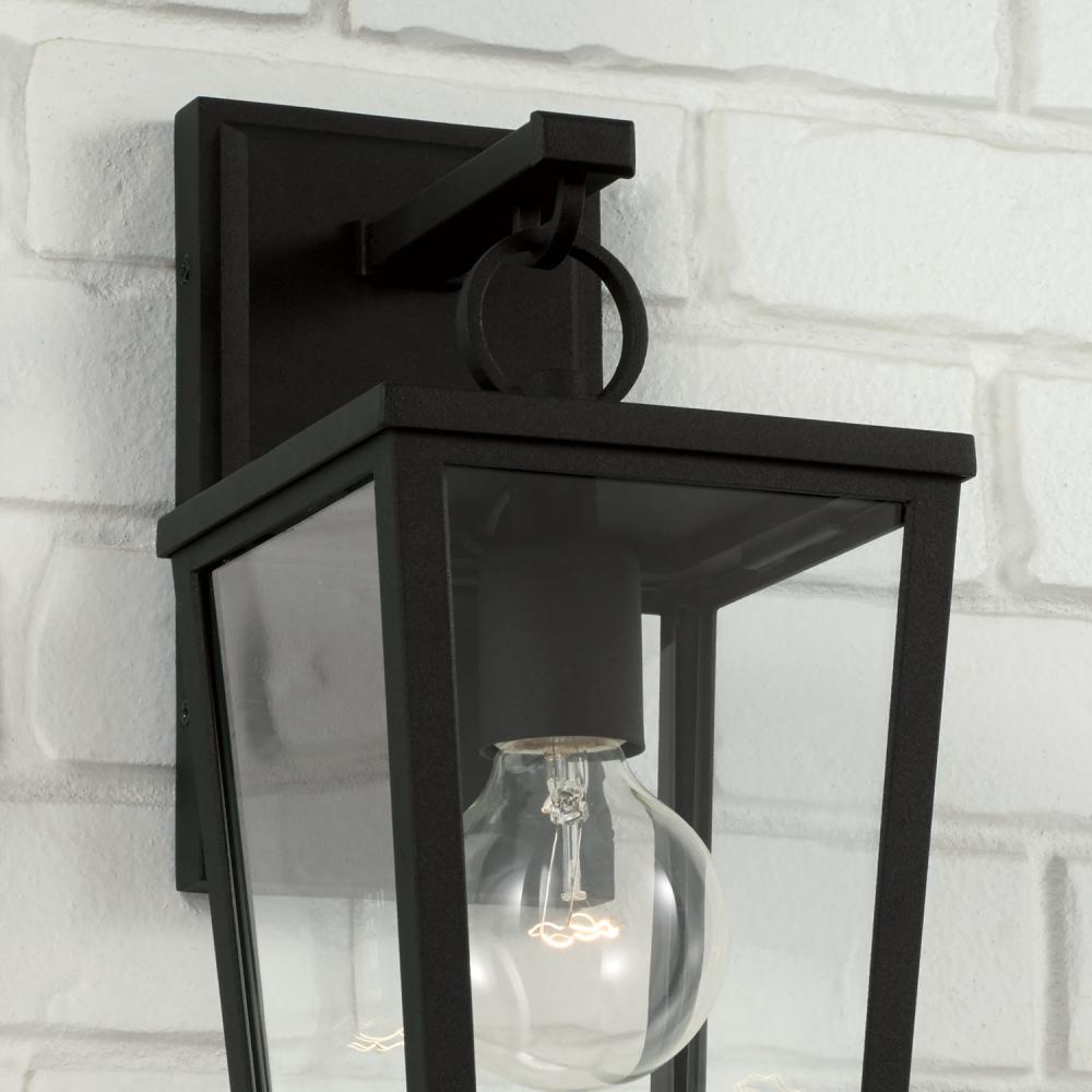 6.25"W x 15.5"H 1-Light Outdoor Wall Lantern in Black with Clear Glass Panels