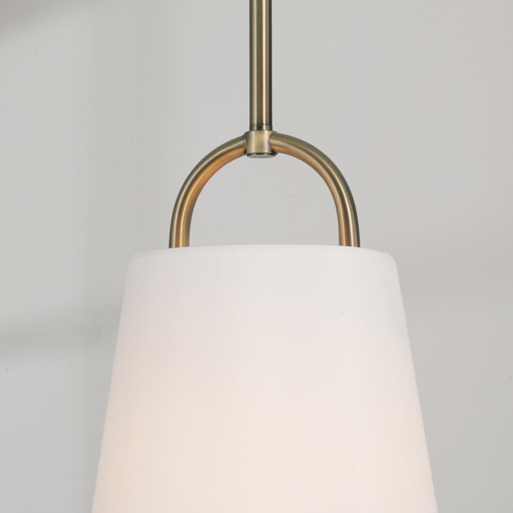 DETAILS: Crisp fabric shade accents the arch detail for a sophisticated, simplified style.