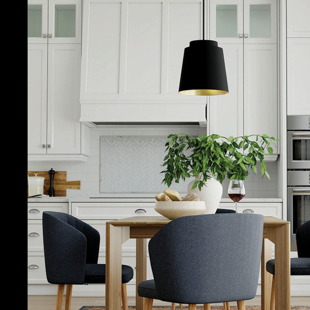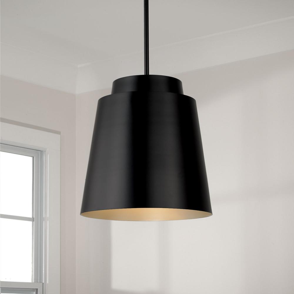 Tapered and concise, the Pratt Pendant brings sophisticated style to any space. Finished in Matte Black, the tiered metal shade creates a sleek aesthetic, while the inner Soft Gold finish invites intriguing dimension.