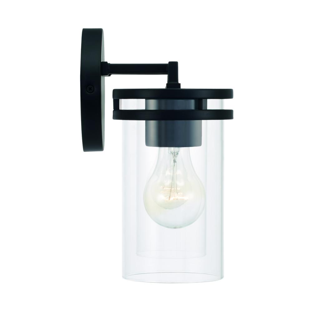 14.25"W x 9.75"H 2-Light Vanity in Matte Black with Clear Glass