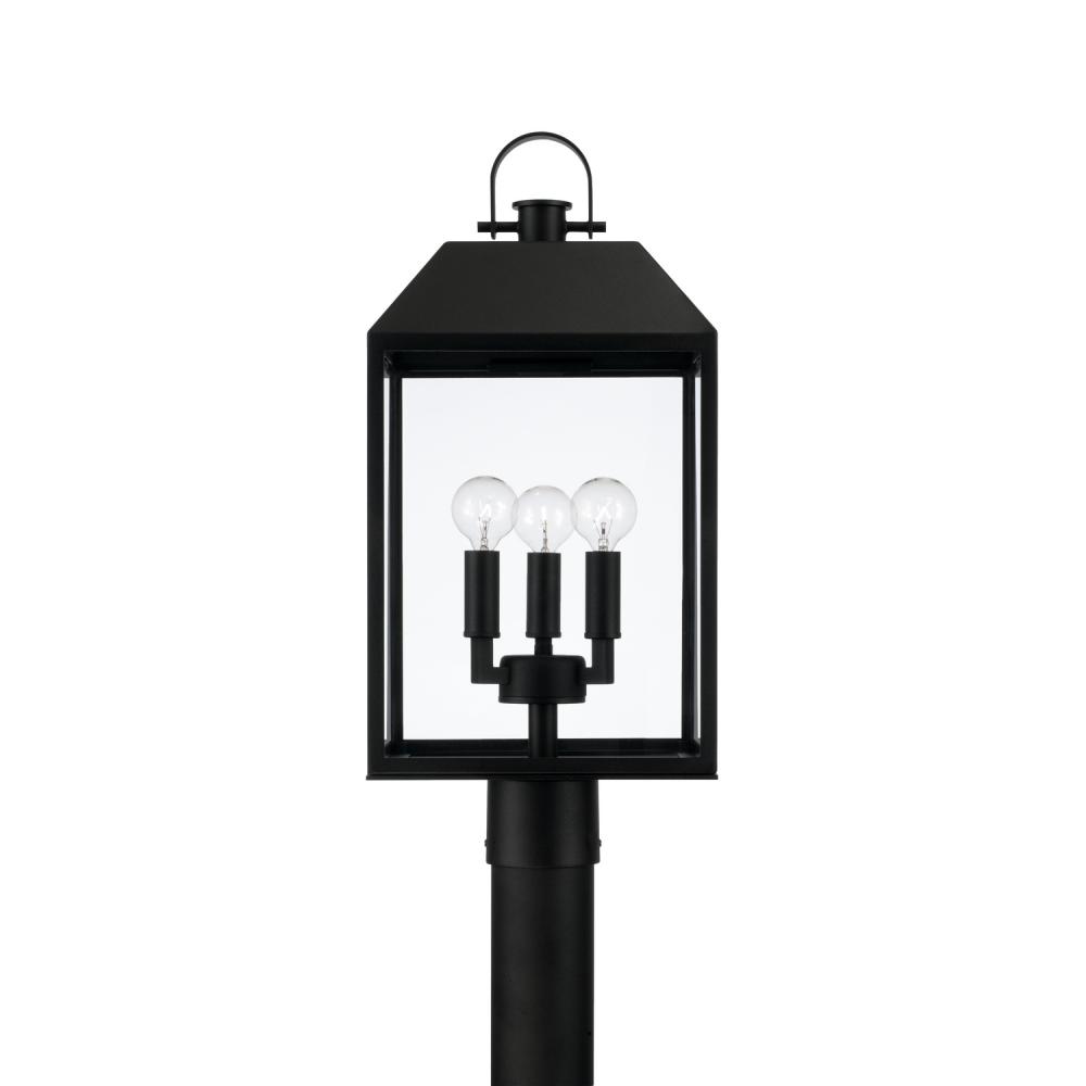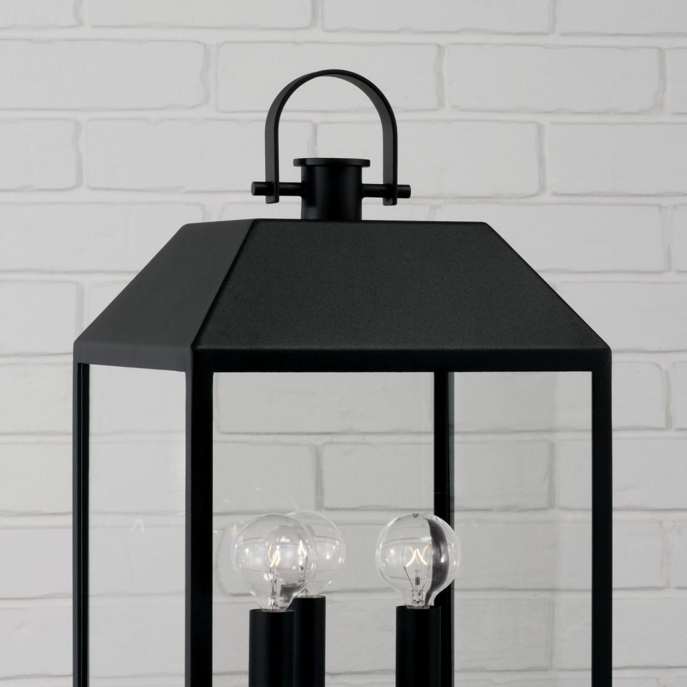 The Nelson Post Lantern seamlessly blends modern style with traditional details. The clear glass panes are framed by the rectangular forms for a distinct aesthetic, rounded out with the arched ring and knob on top, all in our signature Black finish. Part of our Rain or Shine Series and backed by our five-year warranty.