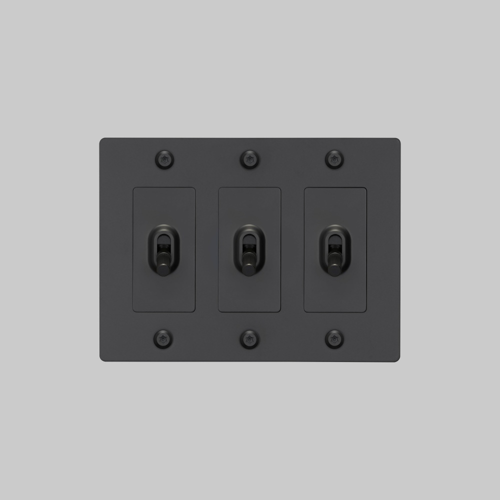 A 3G toggle switch finished in black. The toggle arm features our newest signature, linear knurl pattern and is made from solid black anodised metal.