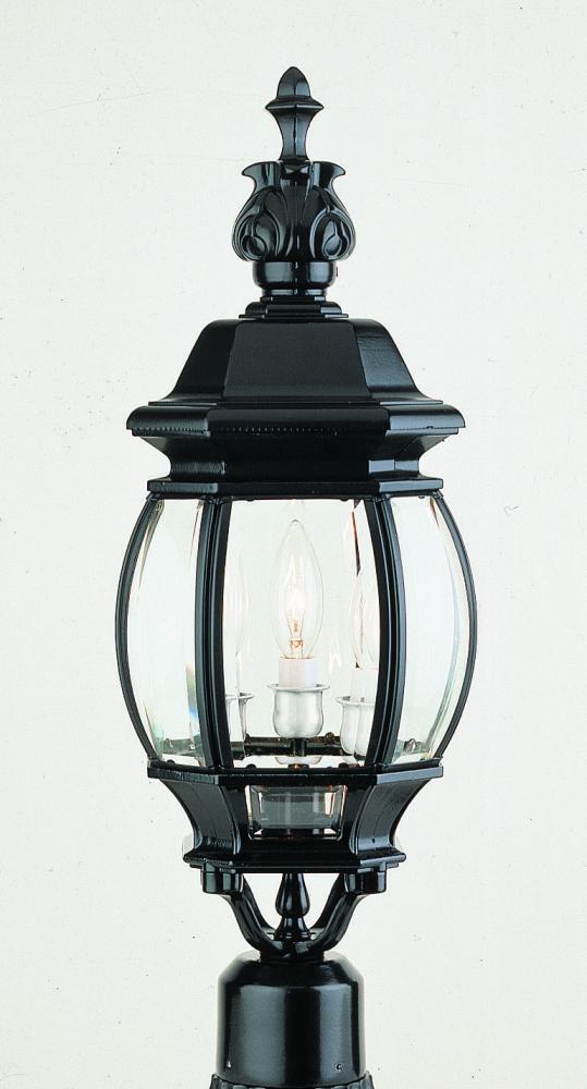 The Parsons 22" Postmount Lantern adds charming character to your home’s exterior. This three-light lantern sets a warm and inviting tone for an outdoor living area while providing ample lighting. This Traditional fixture features an octagon shape lantern with an ornamental finial detail at the top. The clear beveled glass sections are surrounded by a sturdy metal housing and decorative frame. There are multiple frame finish choices with the Parsons Collection, making it easy to blend with your existing pieces.