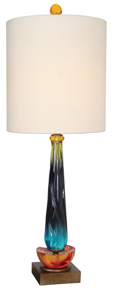 Jewel tones render the shaped acrylic body and finial of this Van Teal Hanzi Table Lamp stunning. This lamp is capped by a simple ivory parchment, hardback shade. It requires one 3-way bulbas (not included). Comes with a 1-year manufacturer's limited warranty.