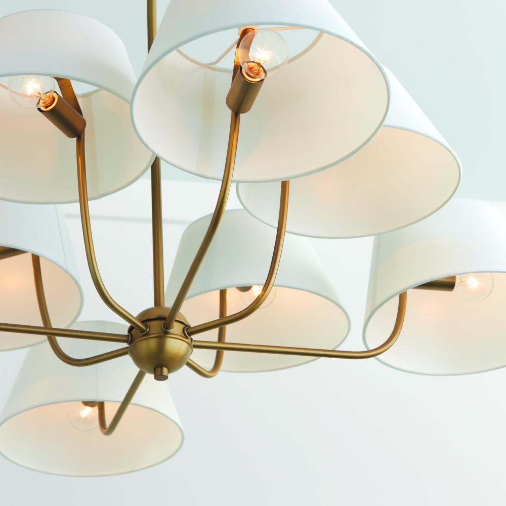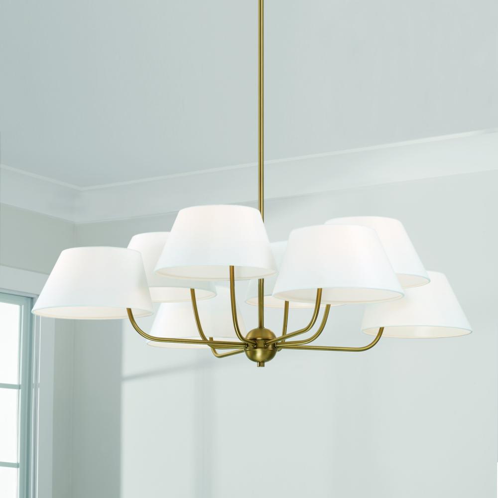 40"W x 21.5"H 8-Light Chandelier in Aged Brass with Offset White Fabric Shade