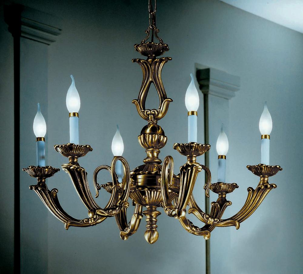 Alexandria III 23"Wide x 23"Long x 28"High Lights: 6 x 60W candelabra Finish Shown: Victorian Bronze Crystal Shown: n/a Chain or Cable Length: 3 Ship Via: Parcel Shipping Weight: 46 Hanging Weight: 40 Catalog/Page Ref: 4601/31 Heavy cast solid brass chandelier frame finished in Victorian bronze.