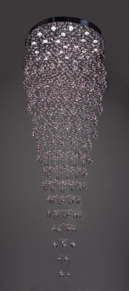 Andromeda 31"Wide x 31"Long x 90"High Lights: 22 x 35W GU10 Finish Shown: Chrome Crystal Shown: Crystalique-Plus Chain or Cable Length: n/a (Ceiling Flush Mount) Ship Via: Parcel Shipping Weight: 112 Hanging Weight: 100 Catalog/Page Ref: 5410/27 The Andromeda series has a contemporary styling with multi-layered faceted lead crystal balls that sparkle under the pure white light of the halogen bulbs.