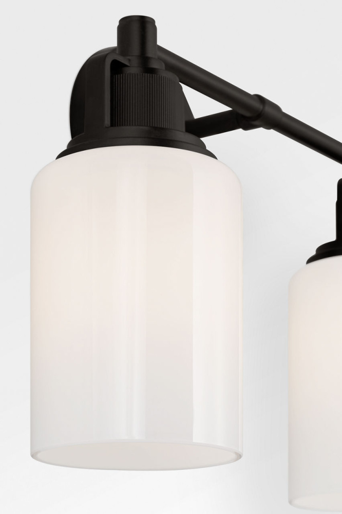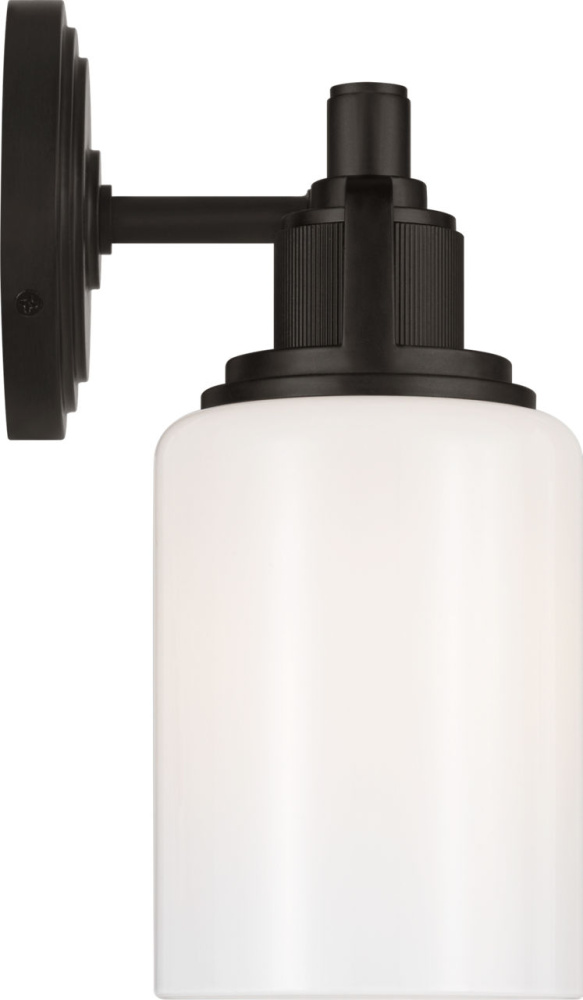 The Ashford 14" Vanity by Chapman & Myers offers a balanced expression of the collection’s architectural clarity and knurled detailing. Its square arch bracket and circular collar mount a white cylindrical glass shade, while the open collar reveals the vertically knurled socket cover—designed to coordinate seamlessly With a range of bath fittings. With a mid-size profile, the 14" vanity is ideal for single vanities, guest bathrooms, or transitional layouts, where its refined proportions and industrial elegance bring cohesion and quiet sophistication to the space.