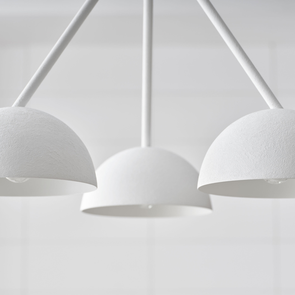 Designed by Christiane Lemieux, the Beaunay three light single tier chandelier in cast plaster is a versatile piece can be used anywhere. Featuring round, bowl-like shades, Beaunay reflects 1920's - 40's European design influences, everything from art deco through to Italian midcentury – even the classic torchieres by Serge Roche. This series includes 2 chandeliers, a pendant and 2 wall sconces, all available in a Cast Plaster finish which gives a beautiful hand-crafted look.