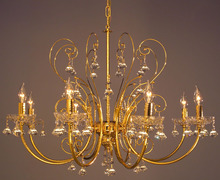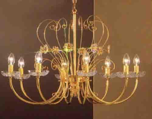 Belleair Italy 31"Wide x 31"Long x 23"High Lights: 8 x 60W candelabra Finish Shown: 24k Gold Plate Crystal Shown: N/A Chain or Cable Length: 3 Ship Via: Parcel Shipping Weight: 18 Hanging Weight: 14 Catalog/Page Ref: 4097/97 Italian chandelier with a 24k gold plated finish over solid brass. The etched solid brass tubing is only available from Italy. The multi-faceted etching creates a jewelry quality finish. Lead crystal encrusted flowers and lead crystal bobeches complete the beautiful design.