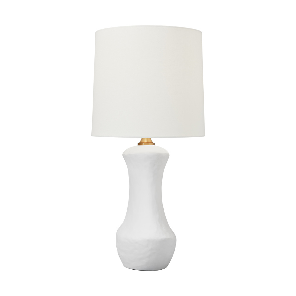 Hand crafted in ceramic the Bone one light table lamp by Hable has a unique shaped base and a black or white finish, making the Bone table lamp an iconic design. Its crisp white shade and brass hardware perfectly accent the delicately detailed art work. Bone offers an enduring presentation of the modern form that will competently revitalize your decor space. A white linen shade caps this piece off with an understated style perfect for ensembles from traditional to contemporary.