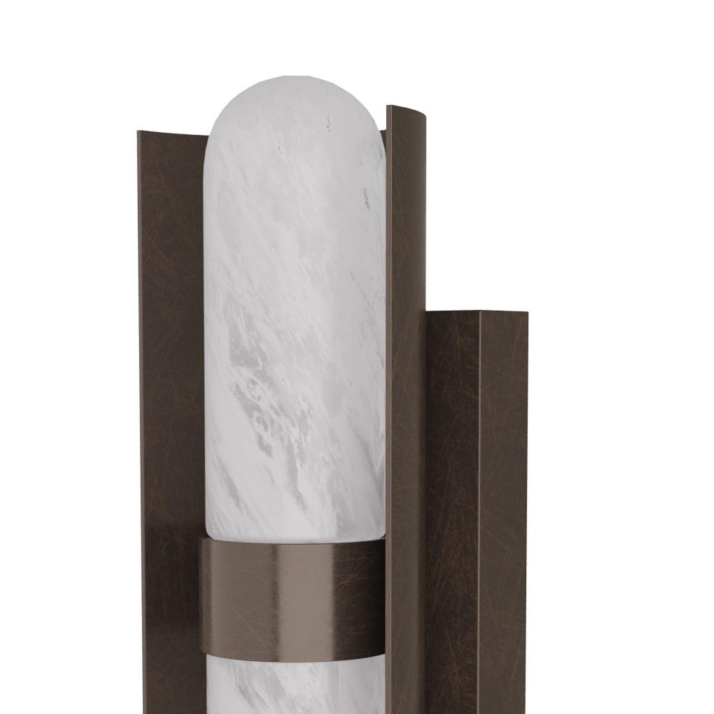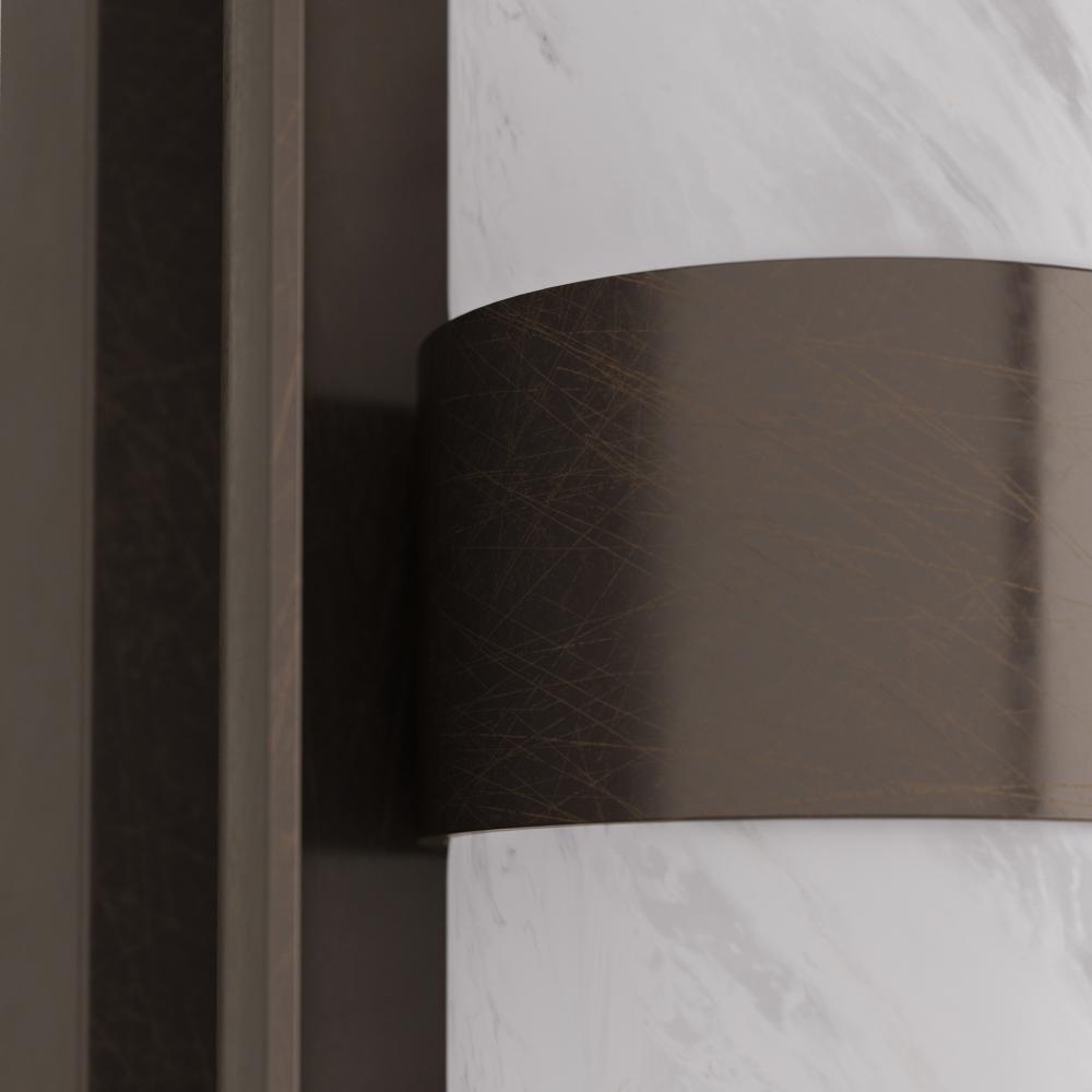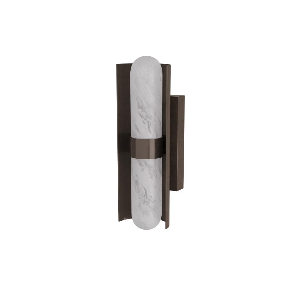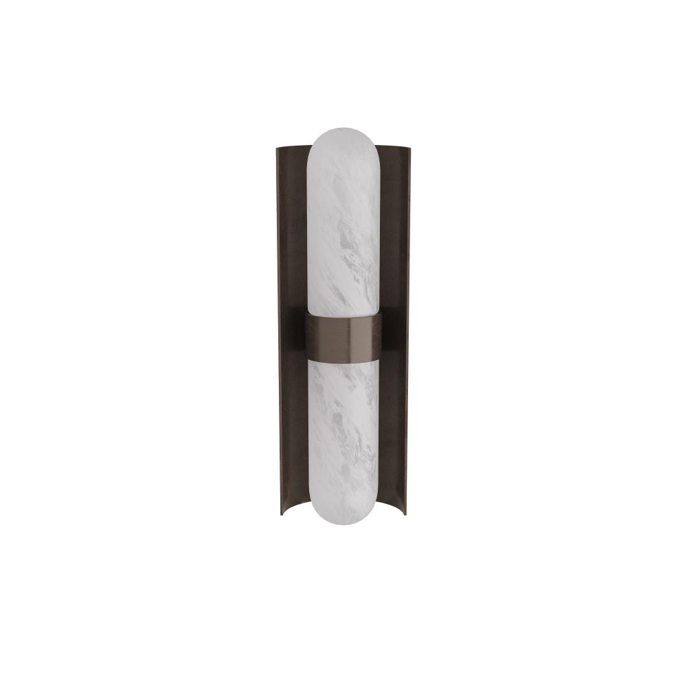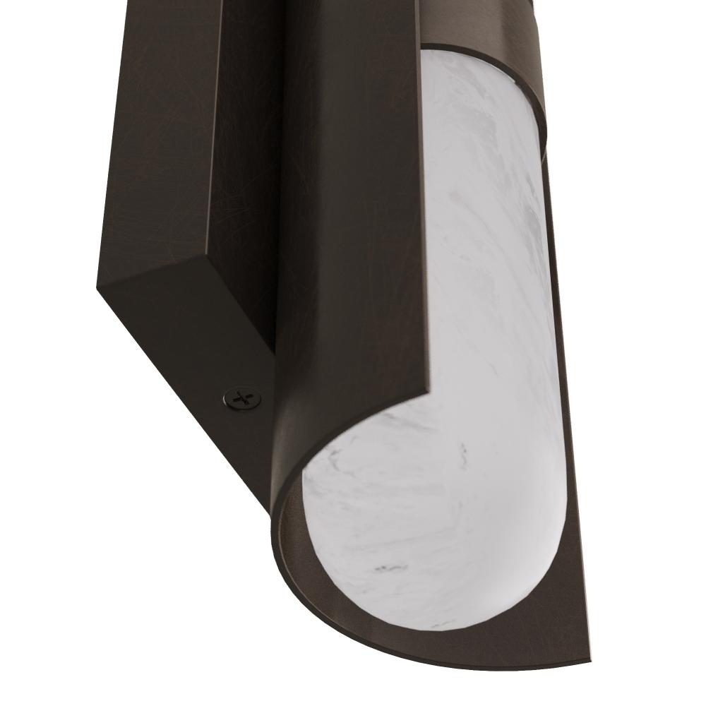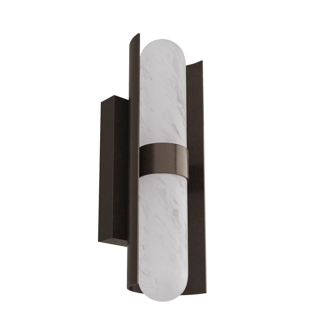 Brilliantly simple, this sconce of tubular glass in a matte swirled finish with a steel backplate of English bronze provides an elegant glow. The curved lines and burnished finish of the integrated LED design recall Deco furnishings, yet the technology is completely modern. Damp-rated, although limited covered outdoor conditions may affect finish. Finish will vary.
