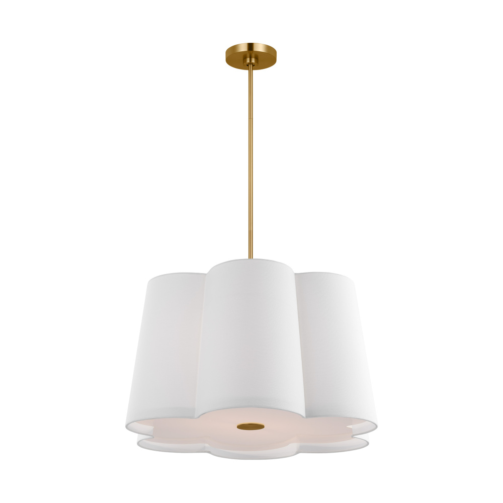 Floral motifs and feminine scalloping take center stage with the Bronte series by kate spade new york. The classic quatrefoil silhouette is beautifully updated with a fabric white line shade and burnished brass finish. Bronte adds a whimsical focal point for the entryway or dining room.