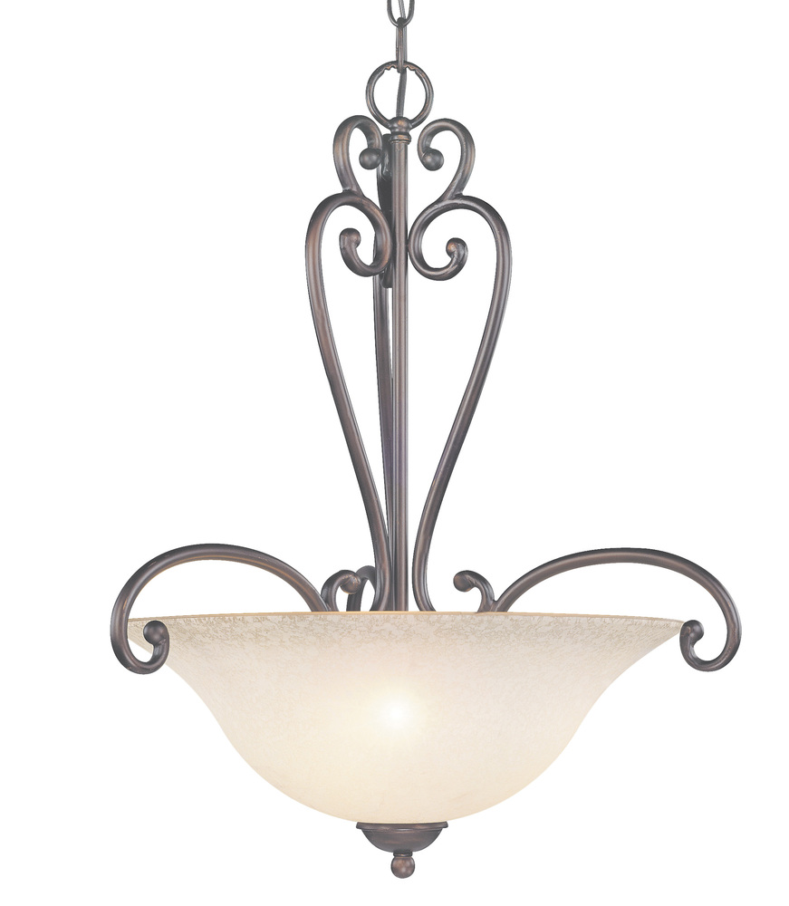 Cape Cod 20"Wide x 20"Long x 22"High Lights: 3 x 60W standard Finish Shown: Oil Rubbed Bronze Crystal Shown: n/a Chain or Cable Length: 3 Ship Via: Parcel Shipping Weight: 15 Hanging Weight: 8.8 Catalog/Page Ref: 5106/33 The graceful flowing scroll work of these iron frames is showcased by the popular Oil Rubbed Bronze finish which highlights the soft curves of the ironwork including the fine finishing at the ends of the scrolls. The rounded tips that are brazed onto the scroll work make the Cape Cod series stand above the crowd of typical cheap pinched metal tubing that is so common in low end product.