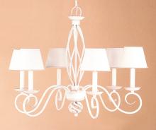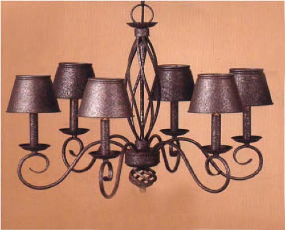 Chalet 26"Wide x 26"Long x 25"High Lights: 6 x 60W candelabra Finish Shown: Antique Iron Crystal Shown: n/a Chain or Cable Length: 3 Ship Via: Parcel Shipping Weight: 20 Hanging Weight: 16 Catalog/Page Ref: Website The Chalet series sports the traditional wrought iron onion twist the has been used over many years to showcase the skill of the iron forger.