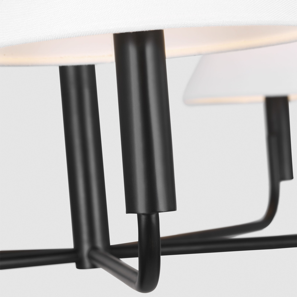 Crafted with Steel in a Aged Iron finish with white linen shades