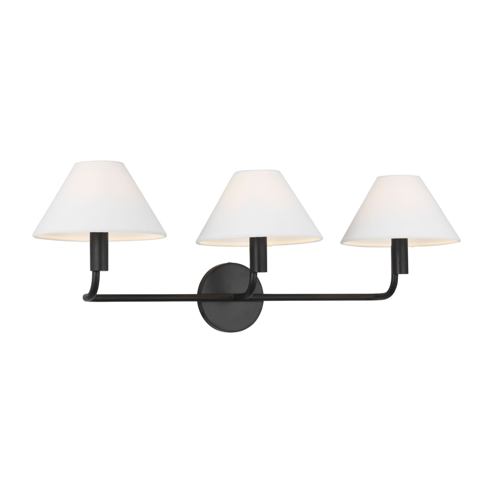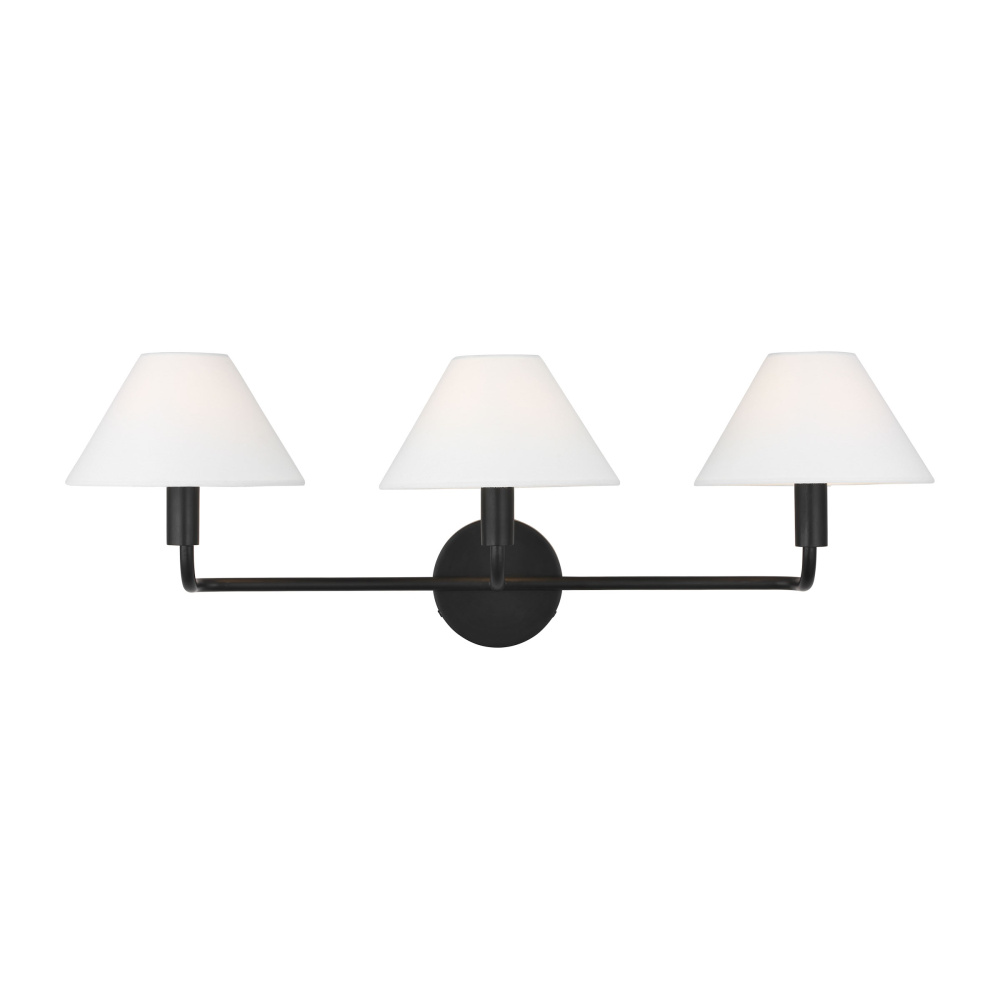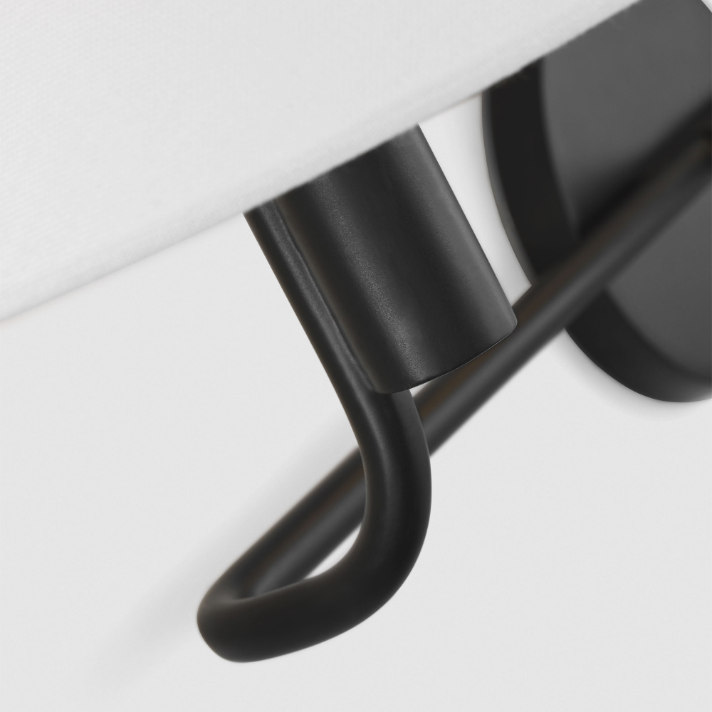 Crafted with Steel in a Aged Iron finish with white linen shades