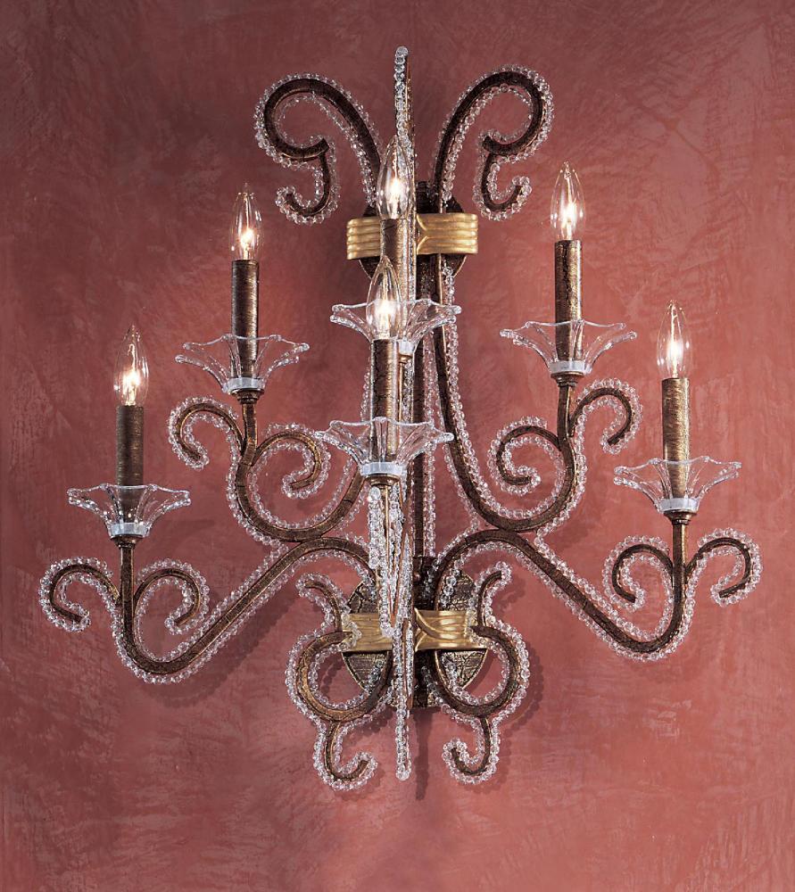 Concerto 23"Wide x 24"High x 15"Deep Lights: 6 x 60W candelabra Finish Shown: Crackle Bronze Crystal Shown: n/a Chain or Cable Length: n/a Ship Via: Parcel Shipping Weight: 20 Hanging Weight: 16 Catalog/Page Ref: 4703/53