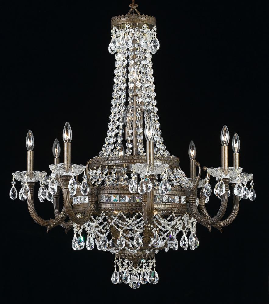 Contessa 35"Wide x 35"Long x 42"High Lights: 16 x 60W candelabra Finish Shown: English Bronze w/Gold Crystal Shown: Crystalique-Plus Chain or Cable Length: 6 Ship Via: Parcel Shipping Weight: 67 Hanging Weight: 43 Catalog/Page Ref: 5410/46 These traditional empire style fixtures with jewel encrusted bandings and heavy cast arms are adorned with Crystalique-Plus 30% lead crystal trim. Based on designs found in castles and grand estates in Europe, the Contessa series is fit for royalty.
