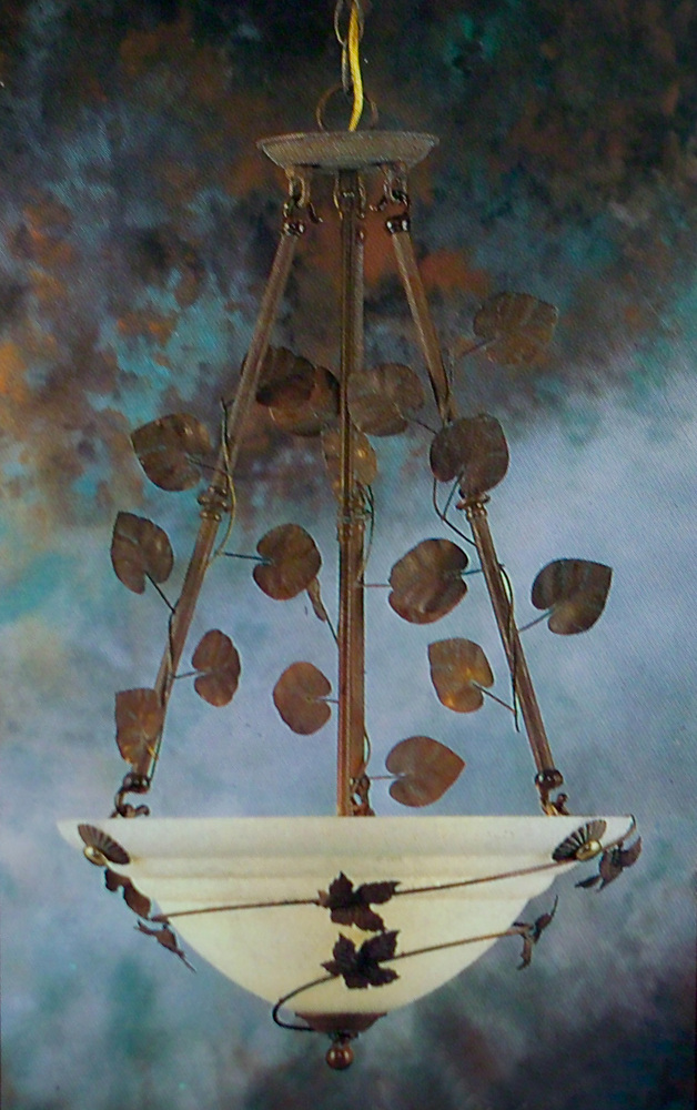 Cortina 16"Wide x 16"Long x 28"High Lights: 3 x 60W candelabra Finish Shown: Verde Bronze Crystal Shown: n/a Chain or Cable Length: 3 Ship Via: Parcel Shipping Weight: 14 Hanging Weight: 10 Catalog/Page Ref: Website The Cortina series have a natural appeal with vines and leaves twisting there way around the columns and frosted glass bowls.