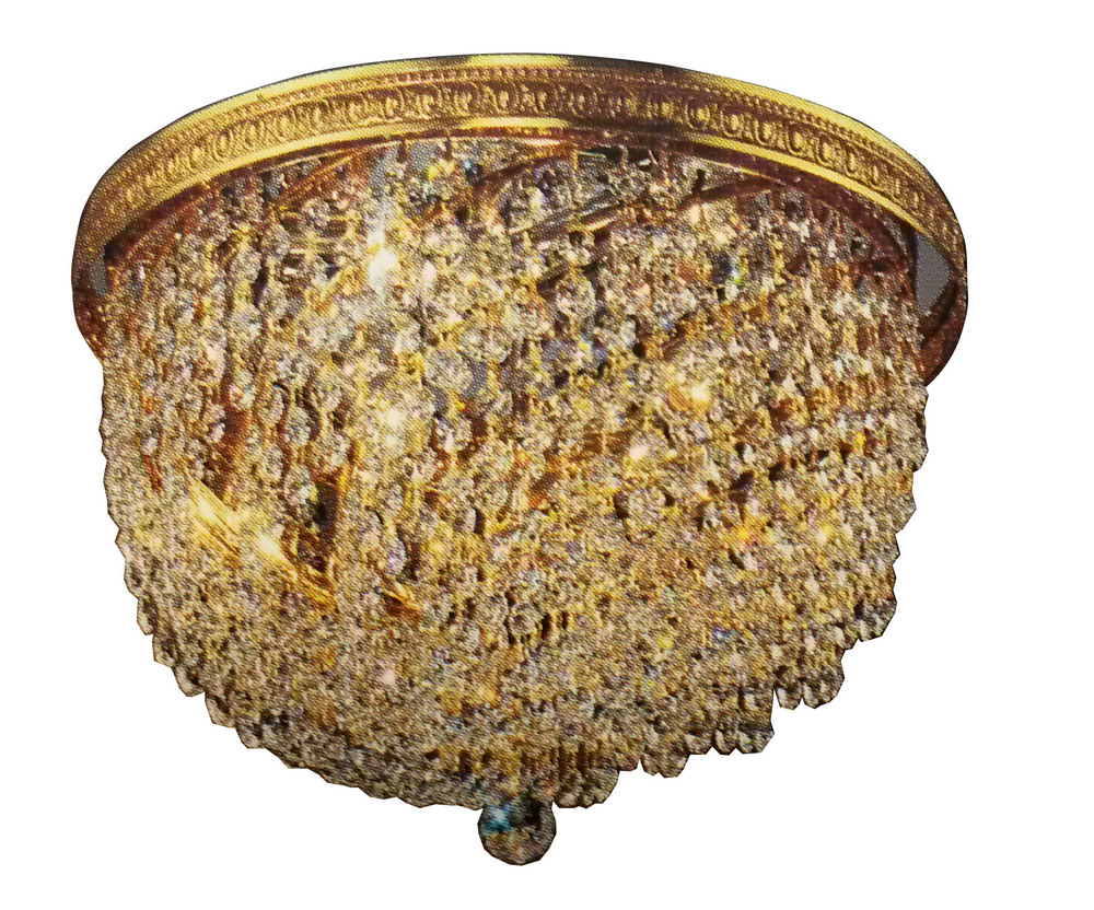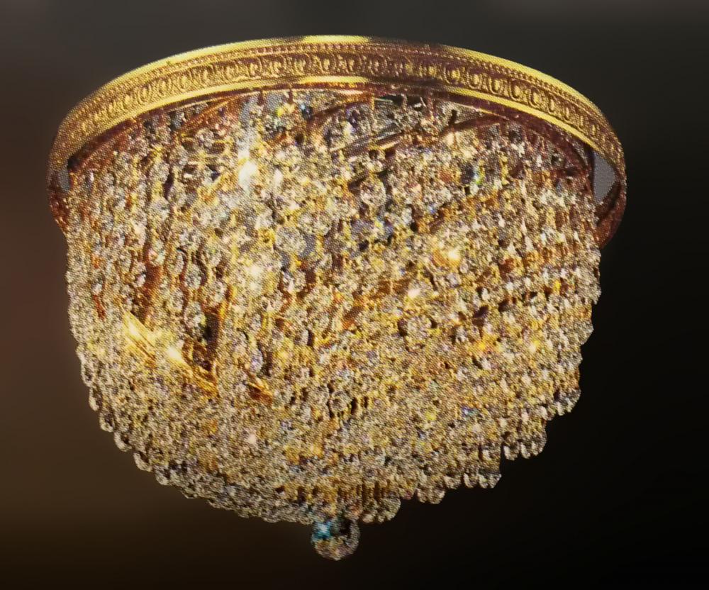 Crystal Baskets 14"Wide x 14"Long x 10"High Lights: 3 x 60W candelabra Finish Shown: Olde World Bronze Crystal Shown: Crystalique-Plus Chain or Cable Length: n/a Ship Via: Parcel Shipping Weight: 4 Hanging Weight: 3 Catalog/Page Ref: 5005/90 Engraved brass galleries lightly antiqued in French gold with chrome reflectors and draped with attractive Italian graduated crystal chains. For better definition and sharper cuts of crystal, our Crystalique crystal is available
