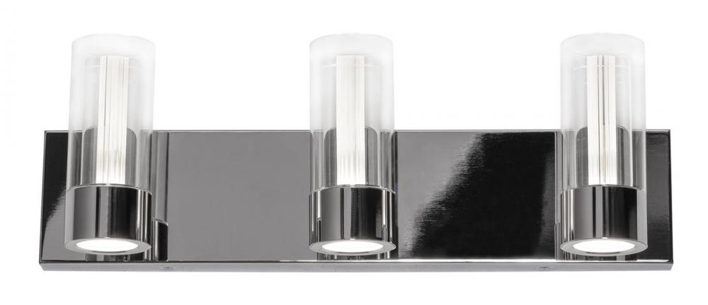 A laser etched inner diffuser with a clear glass outer diffuser, highlights this LED vanity. Offers up and down illumination. Full metal back-pan. Available in three or four light models.