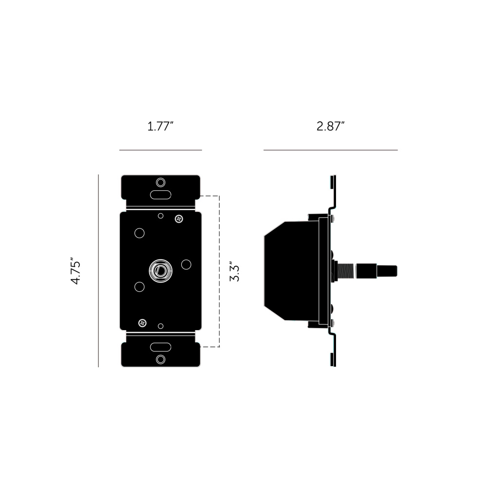 A multipoint dimmer module that works exclusively with our US range of wall plates and detail kits. It operates with a push ON/OFF, has a rotary dimmer action, plus multi-location dimming functionality (via retractive toggle modules). It can be used on a lighting circuit that powers dimmable LED, incandescent or halogen bulbs, and it is optimised for use with all Buster + Punch dimmable light bulbs. Team this dimmer with Buster + Punch retractive toggle modules to turn the lighting circuit on/off and up/down from a second location. The “multipoint” functionality is possible when pairing this dimming module with more than 1 retractive switch, because the dimmer can be controlled by up to 10 retractive switches connected to the dimmer in the same circuit. This is ideal in large spaces where the lighting needs to be controlled from different locations. A short press turns the lights on/off, while a long press cycles the brightness up and down to reach the desired brightness level. Please note that this product is not compatible with the 3-way or intermediate toggle modules.