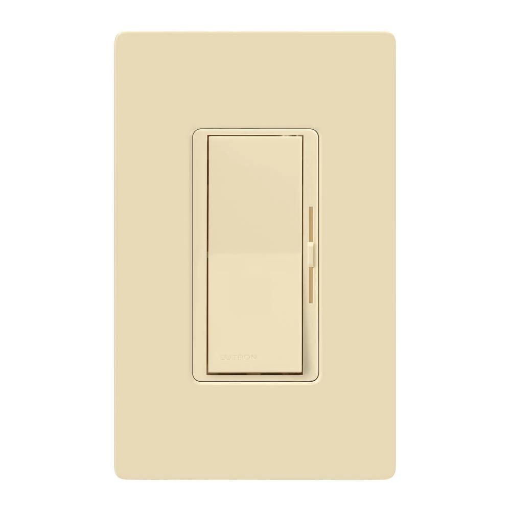 Diva LED+ Dimmer - Gloss Finish, LED, Incandescent/Halogen, 3-way/single-pole dimmer with wallplate, clamshell packaging, 150W LED or 600W inc/hal in ivory