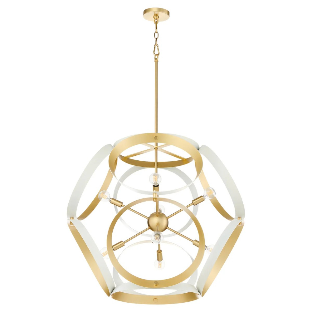 The Domain series is a modern classic featuring clean geometric harmonies and bold negative space. Inspired by the armillary sphere, Domain seeks to evoke a sense of exploration and wonder. The aged brass accents add a touch of timeless sophistication to this collection. Visually light and airy, the Domain brings art and drama to any space it occupies—an excellent choice for entryways, dining rooms, and living areas where impactful lighting is a must.