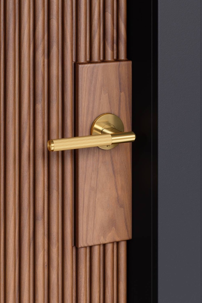 A door lever handle made from solid metal and featuring our elegant linear-knurl detailing, torx screws and laser etched Buster + Punch insignia. Works great on all internal doors and can be combined with our matching door accessories. Includes 2-3/8” backset US passage tubular latch with through bolt fixings