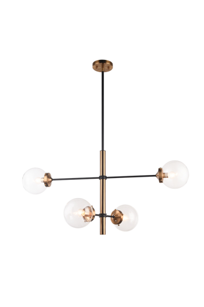 Inspired by the Mid-Century style, Enchant comes with a sleek and modular rod design. The polished series comes in 2 sizes and 2 finishes: Aged Gold Brass and Chrome rods highlighted by black. Available in either Clear or Opal glass.LIGHTBULBS NOT INCLUDED