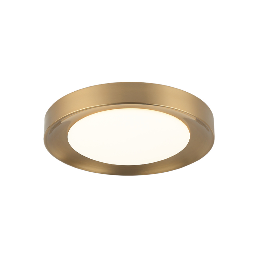 The concave frame surrounding the extended glass shade results in an impressive LED ceiling mount. Essene, available in Aged Gold Brass and Black frame will become an essential fixture in any room.