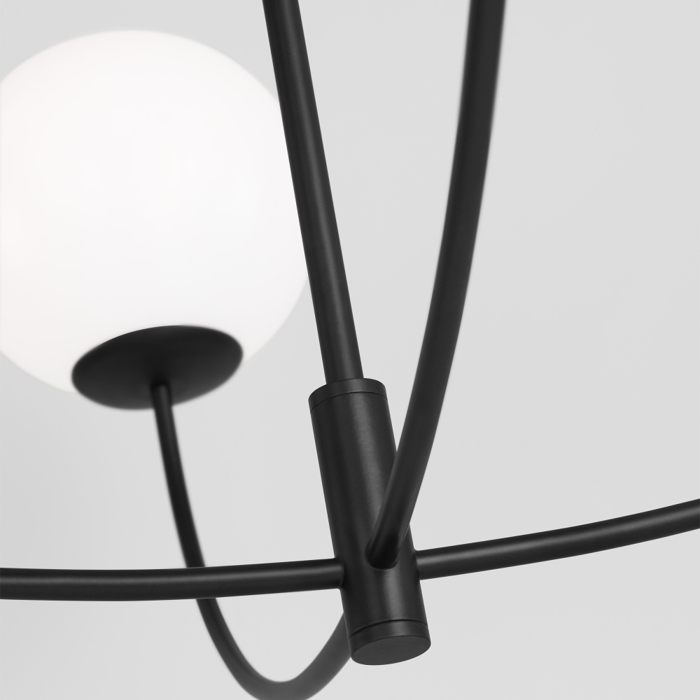 Originally inspired by kinetic sculpture, the Galassia chandelier perfectly balances glass globes on an elongated frame, which gives it a contemporary look. The white glass casts a soft, welcoming glow over space, while the elongated frame works particularly well in high-ceiling rooms.