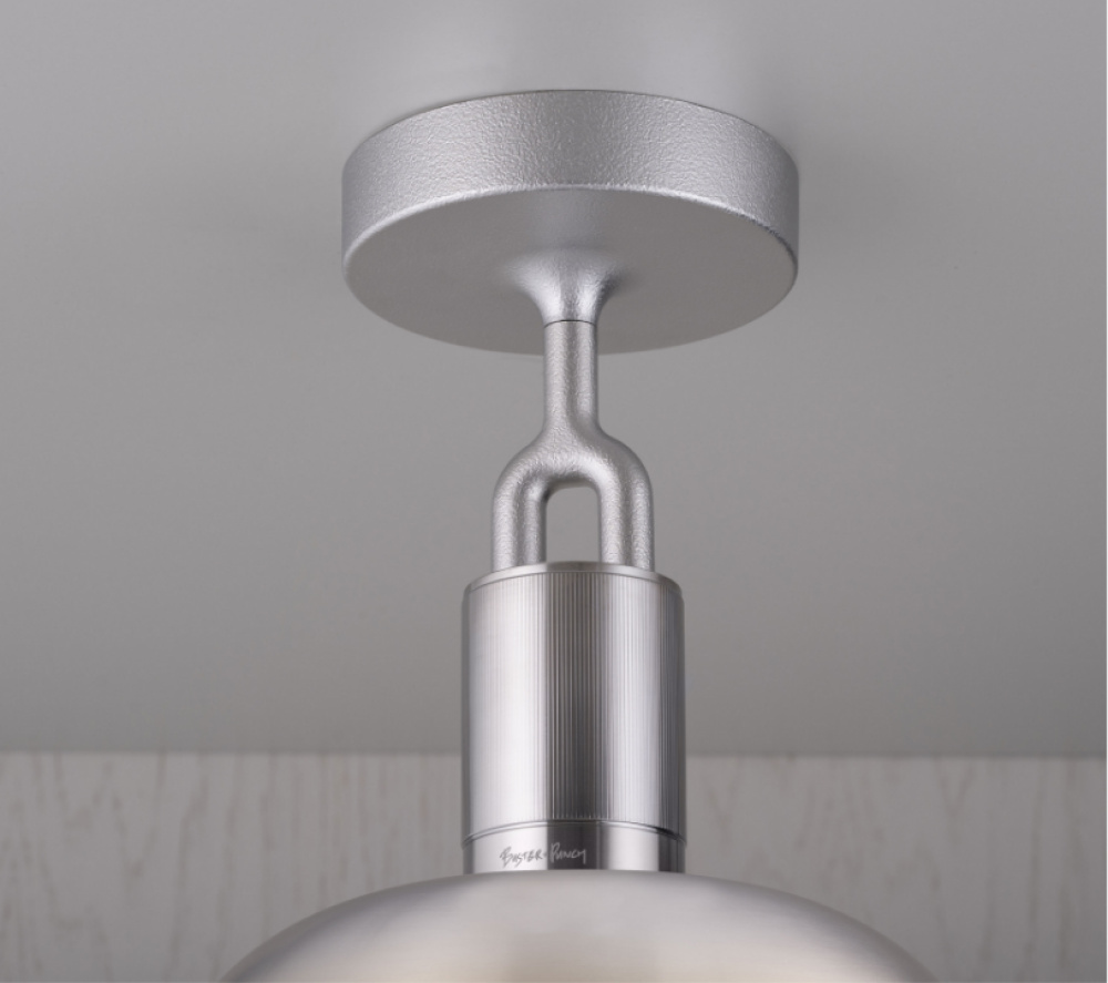 A ceiling light and shade, combining machined, hand-spun and cast solid metal, all refined by hand. It features our cast forked detailing and signature diamond-cut linear knurling. The light comes complete with a handblown opal glass globe and Forked-specific dimmable Buster Bulb, casting a functional ambient light in this configuration.
