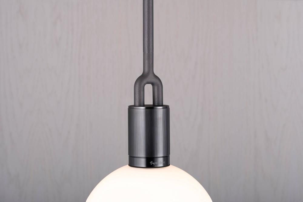 A light pendant combining machined, hand-spun and cast solid metal, all refined by hand. It features our cast forked detailing and signature diamond-cut linear knurling. The light comes complete with a handblown opal glass globe and Forked-specific dimmable Buster Bulb, casting a functional ambient light in this configuration.