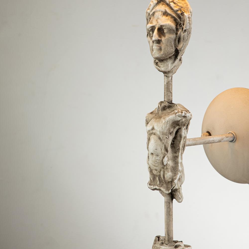Fragment 1 Light Scone in Bone White. The sculpted body of the piece is accented with a subtle antiquing finish the accentuates the detail of the light.