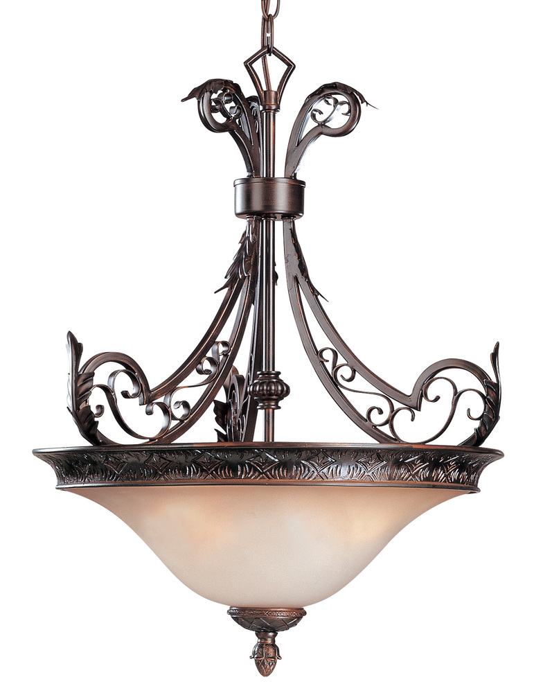 French Quarter 18"Wide x 18"Long x 25"High Lights: 3 x 60W standard Finish Shown: Oil Rubbed Bronze Crystal Shown: n/a Chain or Cable Length: 3 Ship Via: Parcel Shipping Weight: 17.5 Hanging Weight: 13.6 Catalog/Page Ref: 070113/14 The French Quarter of New Orleans is the inspiration for the wrought iron filigree and beautifully engraved castings on this series. The soft glow cast from the antiqued glass and golden shades create the ambiance of old gaslights found in the French Quarter.