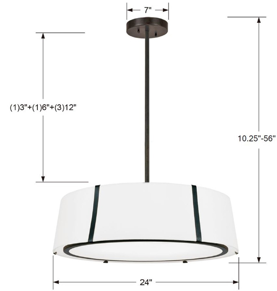 Features a metal ring and glass diffuser. Convertible; can be installed as a chandelier or ceiling mount.