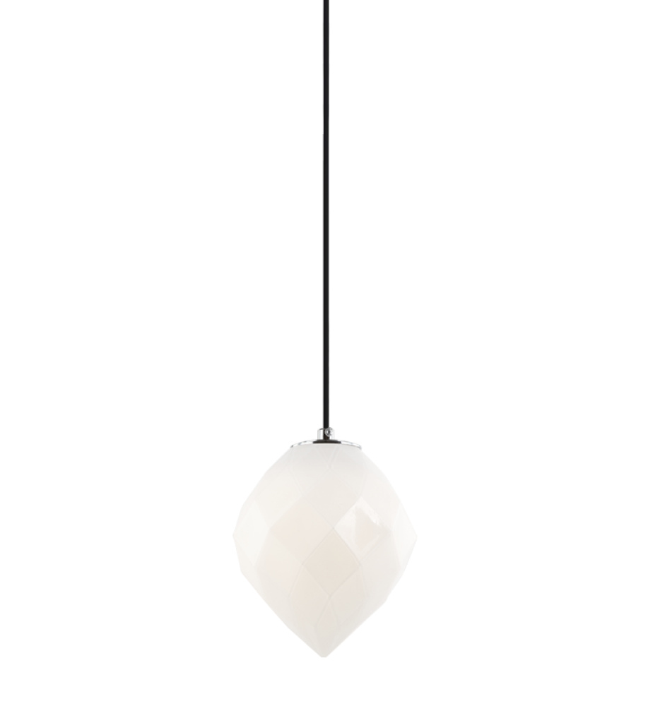 Inspired by the elegance of jewelry, Gemma is designed with prismatic detailed glass in the shape of a polished gem. This series is available in Opal Glass paired with a Chrome canopy and Smoked Glass paired with a Black canopy. Both combinations come in 2 sizes which will provide a sophisticated and elegant presence. LIGHTBULBS NOT INCLUDED