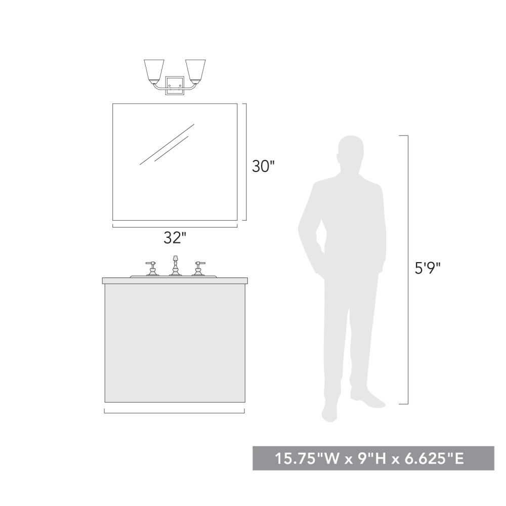Bring modern sophistication into your home with the Golden Lighting Ormond 2-light Vanity. Featuring Clear Glass shades and a stunning Matte Black frame, it creates a welcoming atmosphere. The Clear Glass shades provide unobstructed light, polished to a high-gloss finish, allowing the brilliance of the bulbs to shine through. This simple yet versatile design makes it perfect for various interior styles from farmhouse to contemporary. The Matte Black finish adds a touch of timeless elegance, with a smooth surface that complements any decor. Damp Location Rated, this light is ideal for spaces with occasional moisture, such as bathrooms and covered porches. Overall Dimensions: 15.75"W x 9"H x 6.63"D. Requires 2 E26 Medium base bulbs (not included, max 60 watt). Stylish and functional, this fixture elevates your bathroom space with its brilliant design.