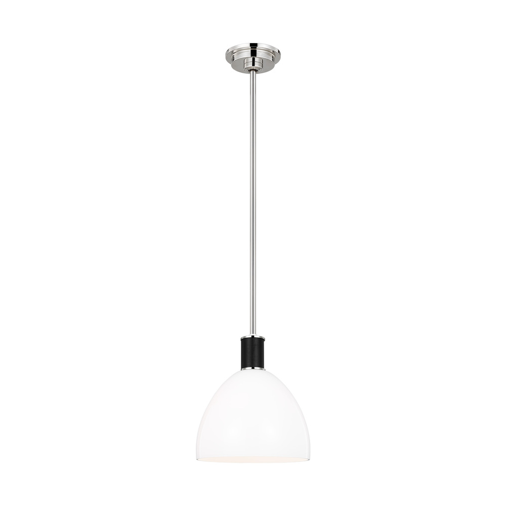 Classic lantern and pendant series with leather details. The combination of leather and steel gives this series equestrian flair. At home in a variety of decors, this small pendant from Lauren Ralph Lauren is simple yet impactful with its leather elements in a Polished Nickel with frosted glass shade. With its compact size, we especially love this paired in multiples above a dining room table or kitchen island. A truly transitional series that can be at home in any décor.