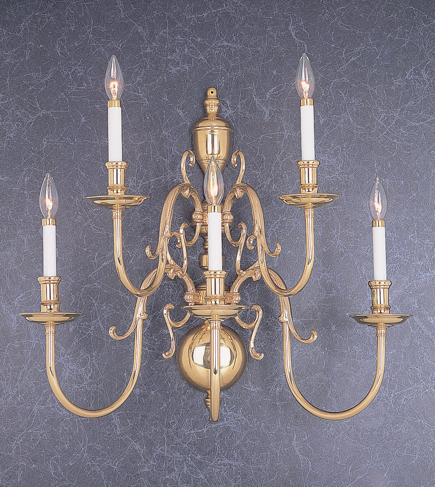 Hermitage 23"Wide x 25"High x 14"Deep Lights: 5 x 60W candelabra Finish Shown: Polished Brass Crystal Shown: n/a Chain or Cable Length: 3 Ship Via: Parcel Shipping Weight: 10 Hanging Weight: 8 Catalog/Page Ref: 5005/291 Classic’s Hermitage collection offers traditional Early American styling with heavy gauge arms and brass castings. This solid brass series is furnished in a wide variety of sizes and light configurations scaled for beautiful residences or commercial establishments