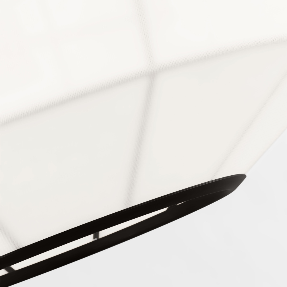Showcasing multifaceted geometry, the Hikari series by Ellen DeGeneres is inspired by her personal collection of sculptural lighting. Grounded by the contrast of hard and soft materials, the aged iron and white linen fixture radiates soft, diffused light. The Hikari pendant can be used in a dining room, living room, bedroom or entryway.