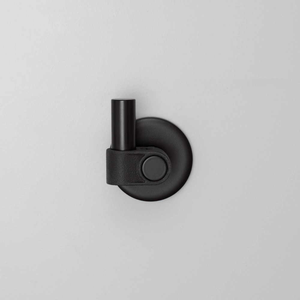 A hook with rough-cast knuckle and hand polished solid metal bar. It can be installed onto walls or furniture items, to hang the things you love close to hand, anything from kitchen pans and light fittings to coats. Available in steel, brass, gun metal and welders black.