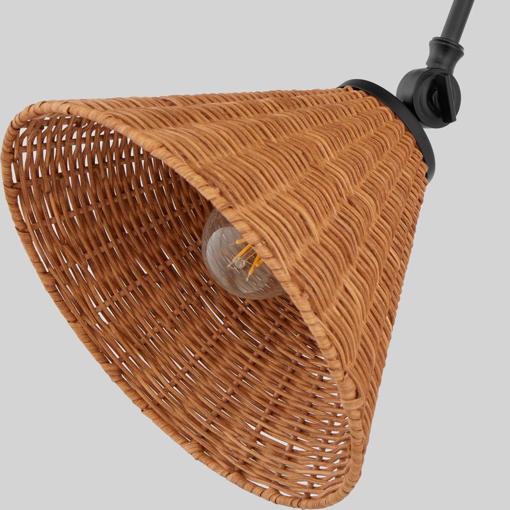 Three swivel/knuckels points at mounting plate, mid-arm and shade