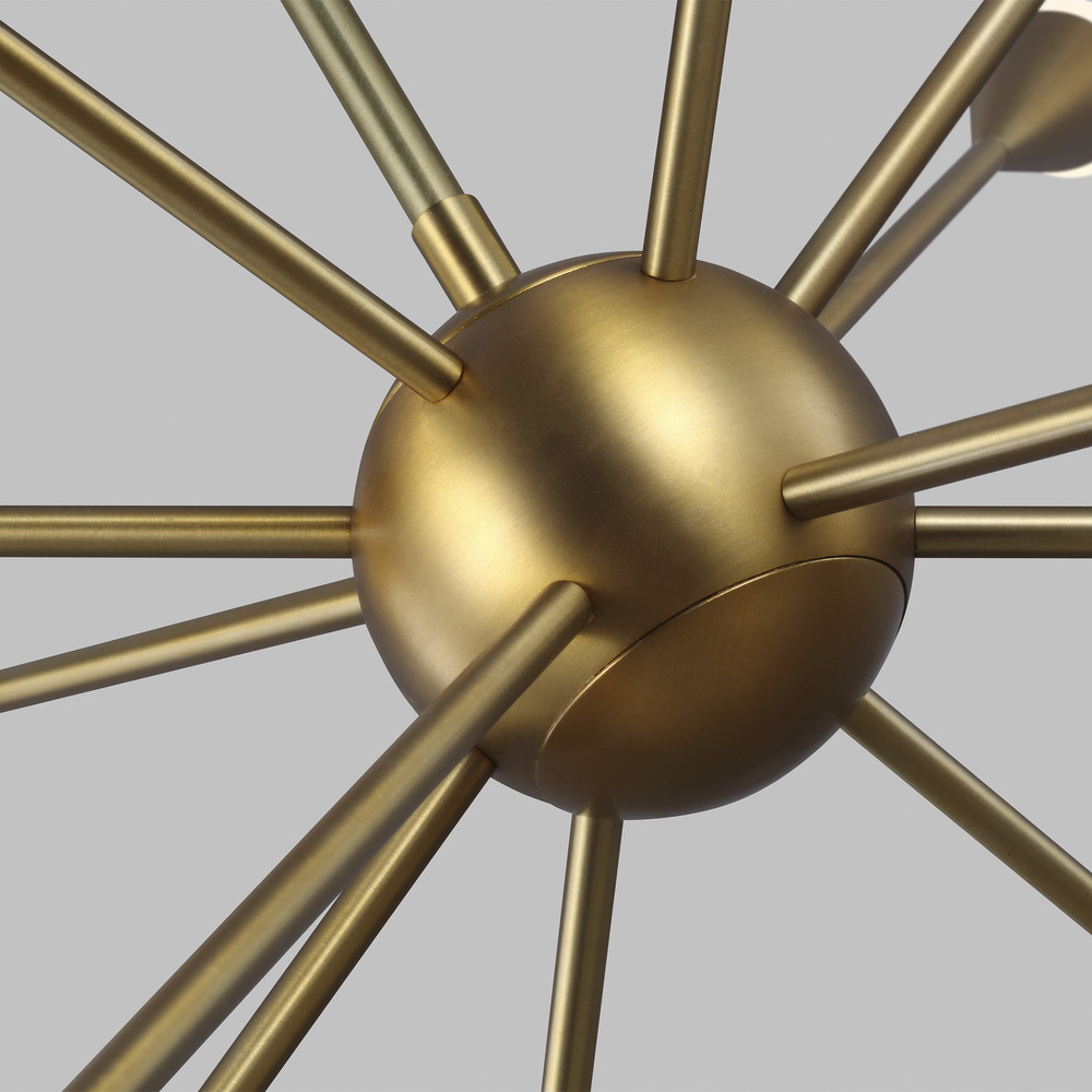 The Jax twelve light single tier chandelier in burnished brass provides abundant light to your home, while adding style and interest. Jax channels the celestial allure of a starburst silhouette, celebrating its iconic status within classic art deco design. Three finish options - including Burnished Brass, Polished Nickel and a stunning two-tone Midnight Black/Burnished Brass combination - make a refreshingly modern statement.