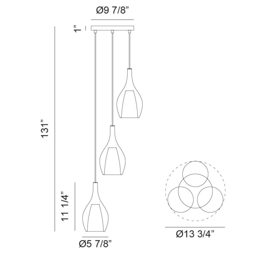 3 LT "JERICHO" D13.75" CHROME+ CL GLASS PENDANT E26