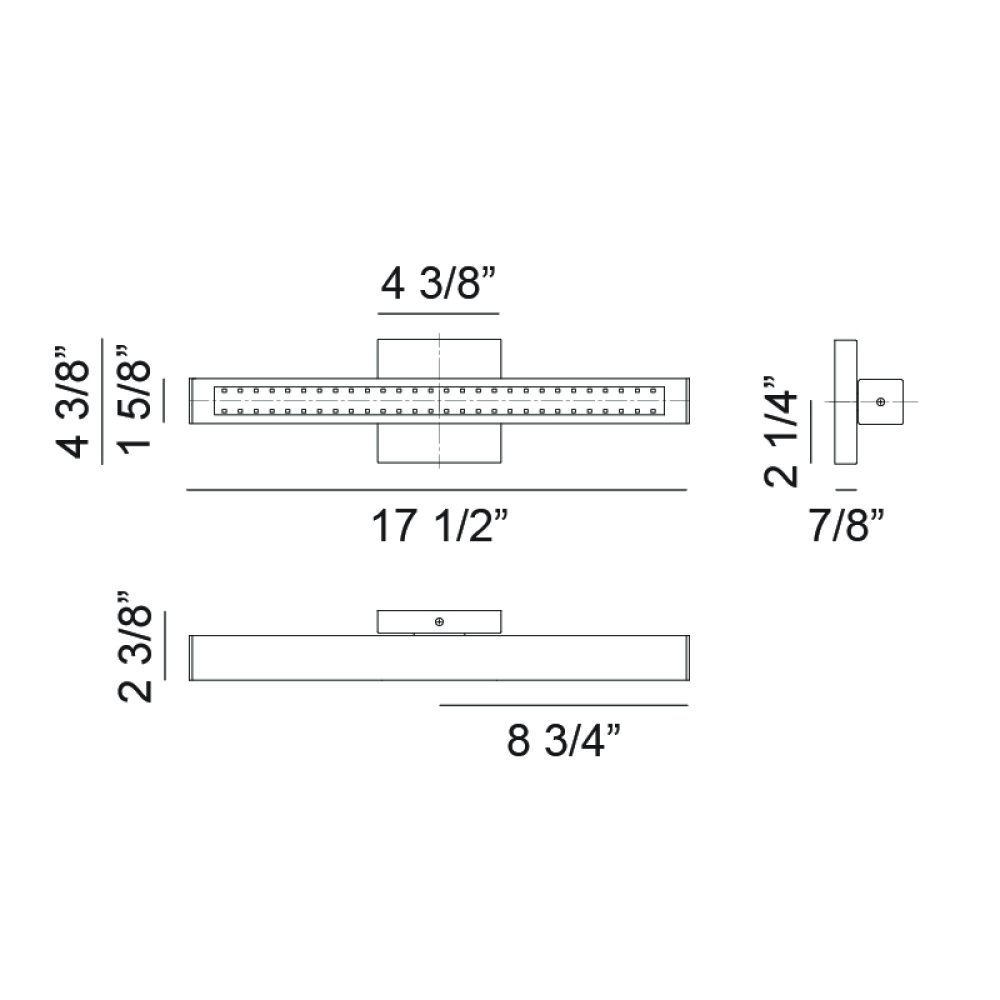 17.5"L x 1.63"W x 1.63"H