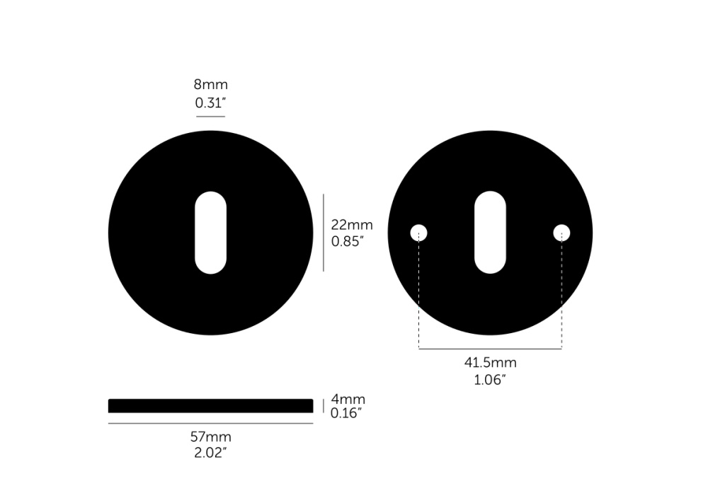 An indoor key escutcheon made from solid metal. Works great on all internal doors and can be teamed up with our matching door lever handles. This key escutcheon is suitable for a Euro cylinder lock and has a C-C fitting size (screw distance) of 41.5 mm.