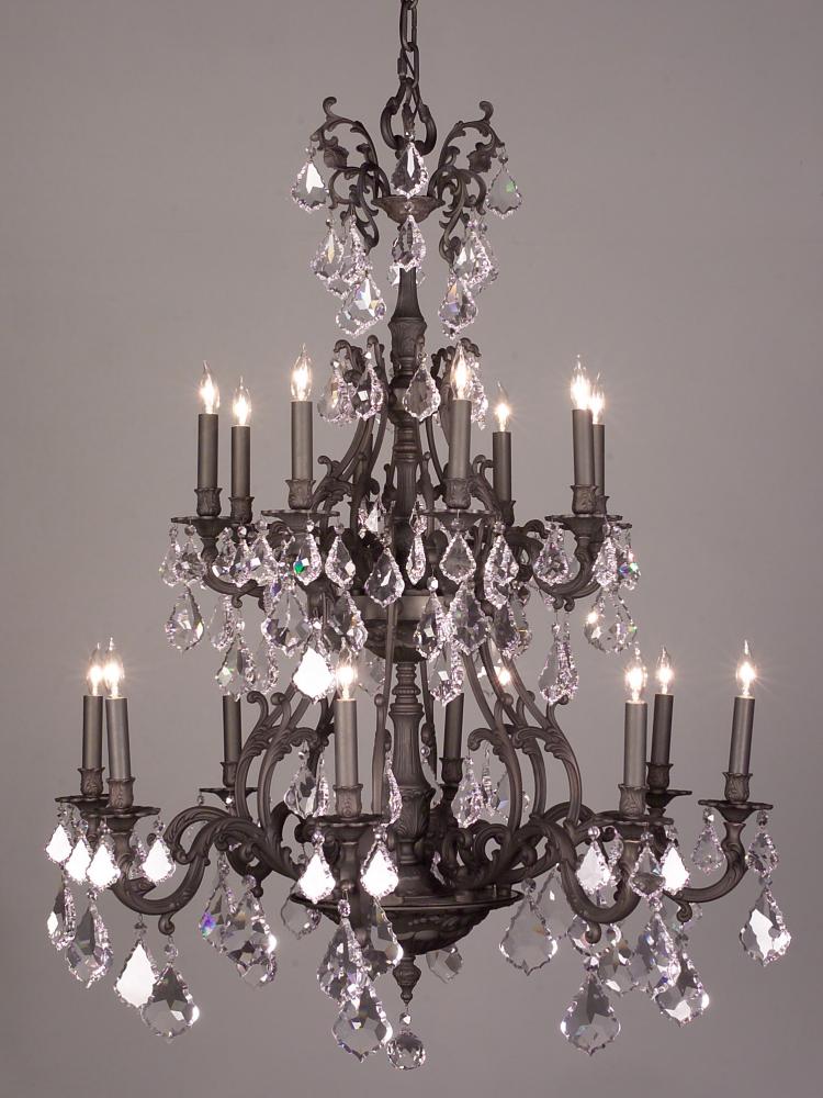 Majestic 38"Wide x 38"Long x 51"High Lights: 16 x 60W candelabra Finish Shown: Aged Bronze Crystal Shown: Crystalique-Plus Chain or Cable Length: 6 Ship Via: TRUCK Shipping Weight: 169 Hanging Weight: 99 Catalog/Page Ref: 5207/04 Solid brass castings from Spain and Italy, Spanish craftsman doing what they do best, top quality popular finishes- the perfect formula for a majestic line of old world family of chandeliers. Add the best, yet affordable, Crystalique Plus lead French Pendalogs and the result is two exquisite collections of chandeliers- the Majestic and Chateau.